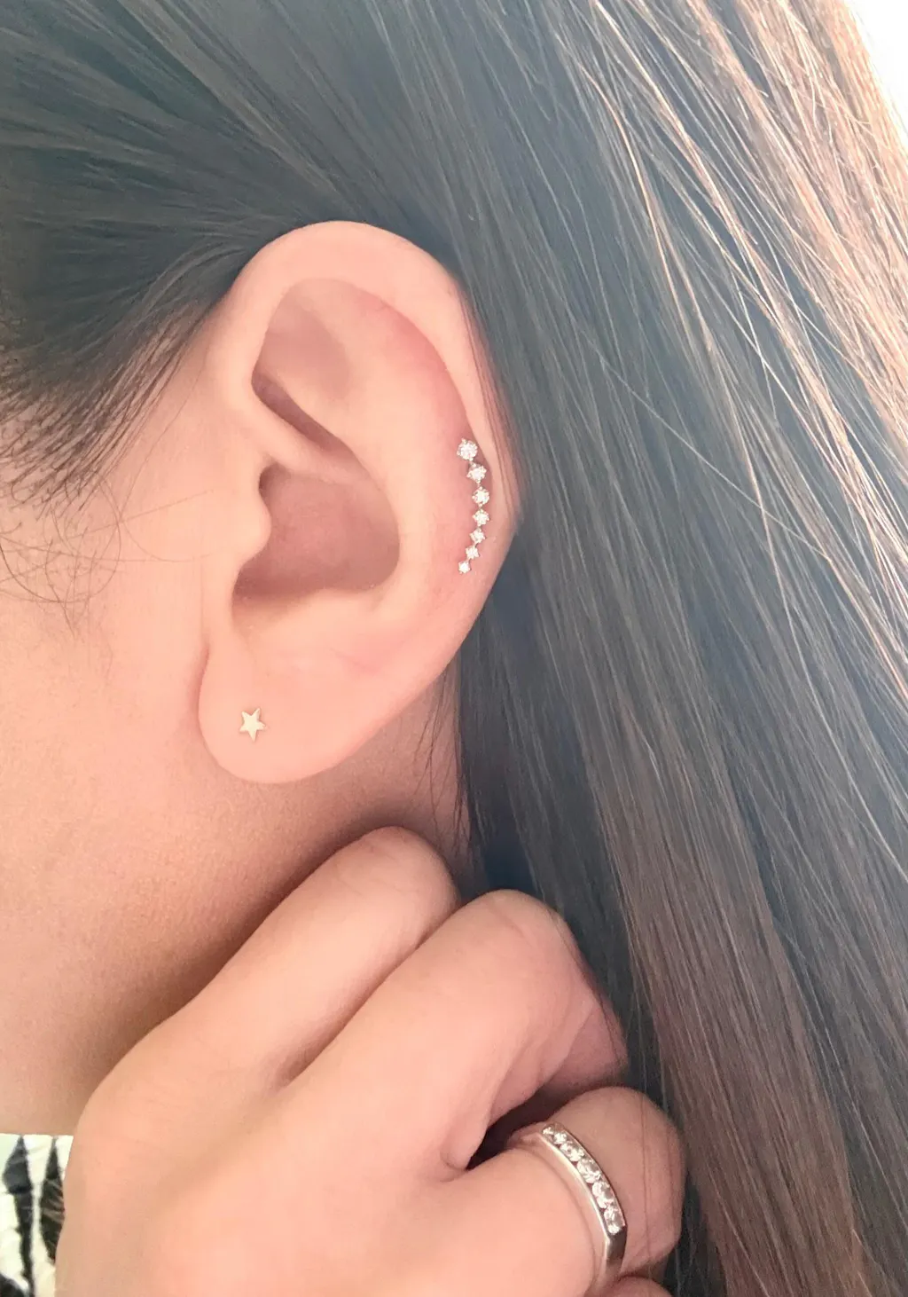 耳裏の方にダイヤをつけていますが
