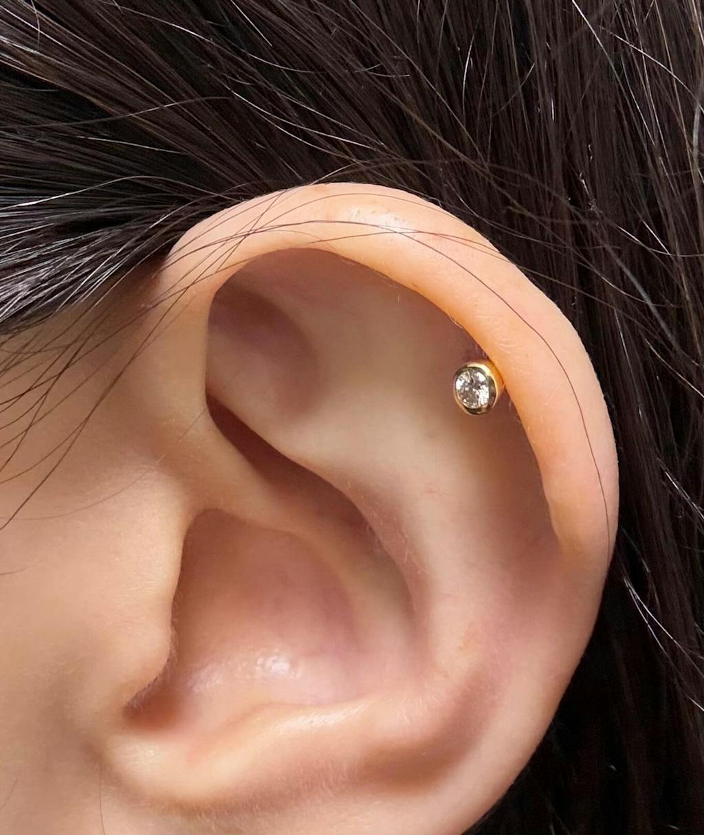 This is a set of diamond parts and a labret stud barbell. The delicate sparkle of the diamond and the snag-free design make it a piercing you’ll want to wear all day, even in the bath or while sleeping.