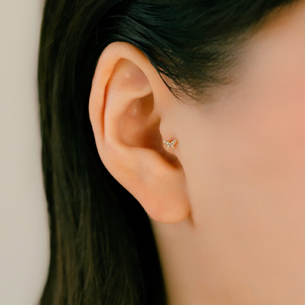 An adorable butterfly motif. A charming shape, carefully crafted even on the underside, with a slightly compact size. Champagne-colored diamonds that complement gold lend a subtly refined, grown-up feel.