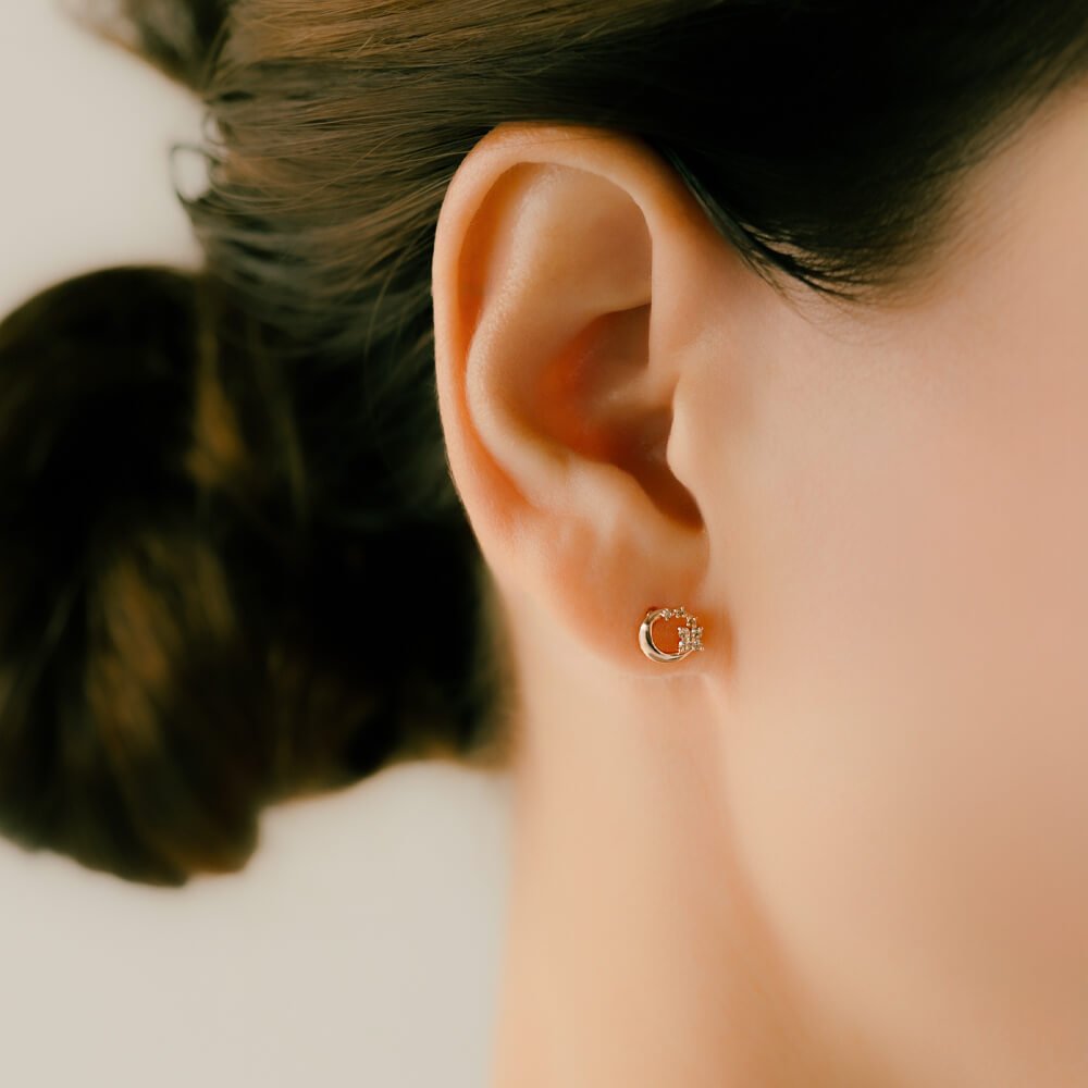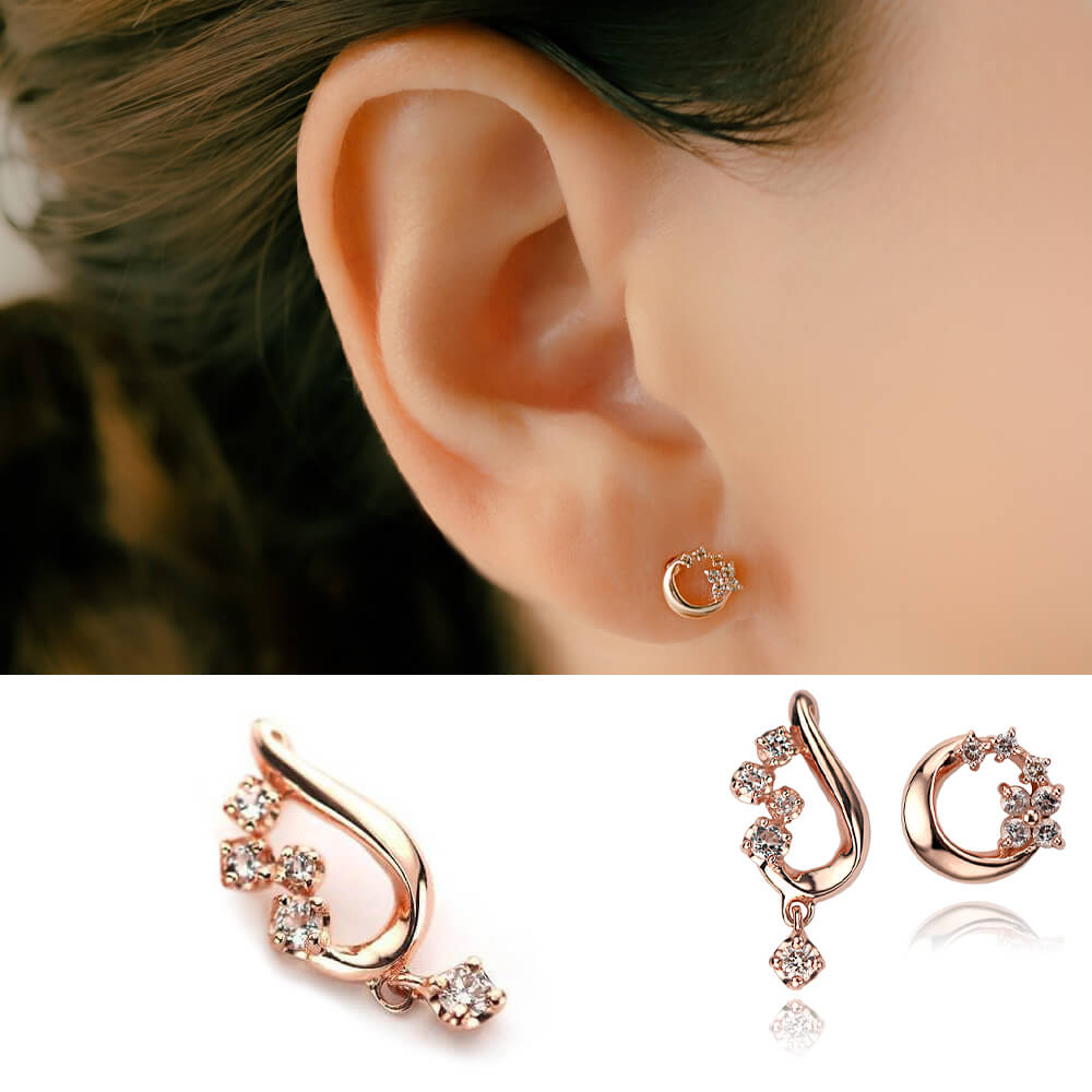 なめらかな曲線の先で揺れるダイヤモンドは零れ落ちる雫のように麗しく、耳元で揺れながら輝きます。