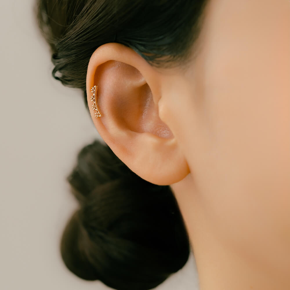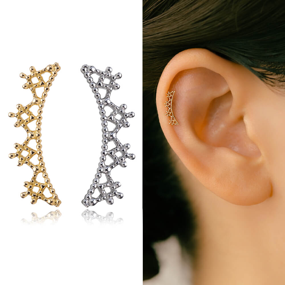 Delicate millgrain that makes yellow gold and white gold shine attractively. A lace-design part that adorably decorates the ear line.