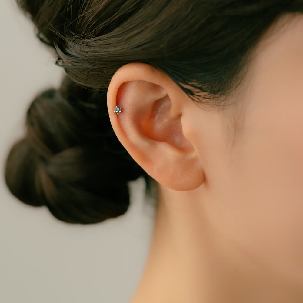 Montana sapphire, a rare stone mined in the U.S. state of Montana. Its richly varied colors — blue, green, yellow and more — change with the viewing angle, mingling as if color had gently spread through clear water so that no two expressions are the same. Enjoy the sharp brilliance unique to high-altitude sapphires and their one-of-a-kind hues, in a simpleProng designPlease enjoy.