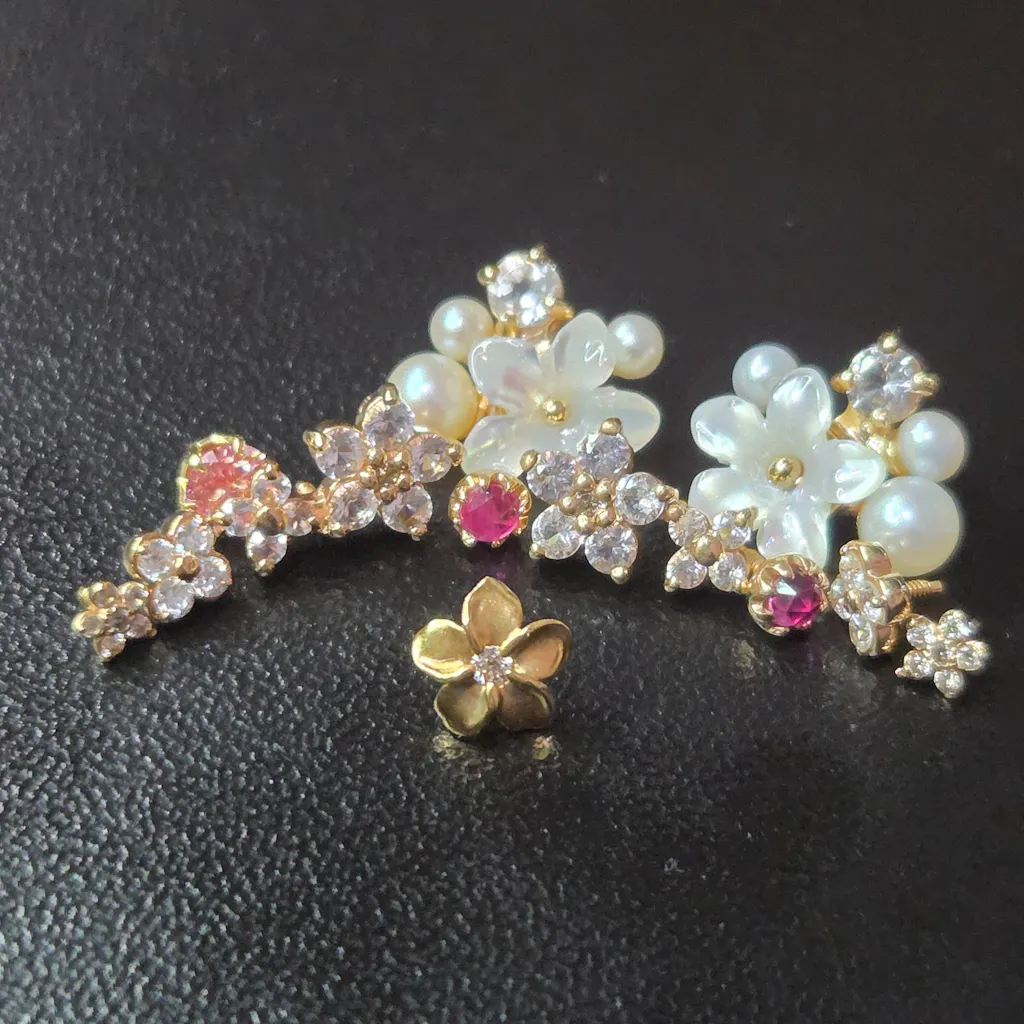 A three-dimensional plumeria motif carefully crafted all the way to the back. The petal surface has a subtle matte finish, so even with its slightly larger size, you can enjoy a calm, understated look.