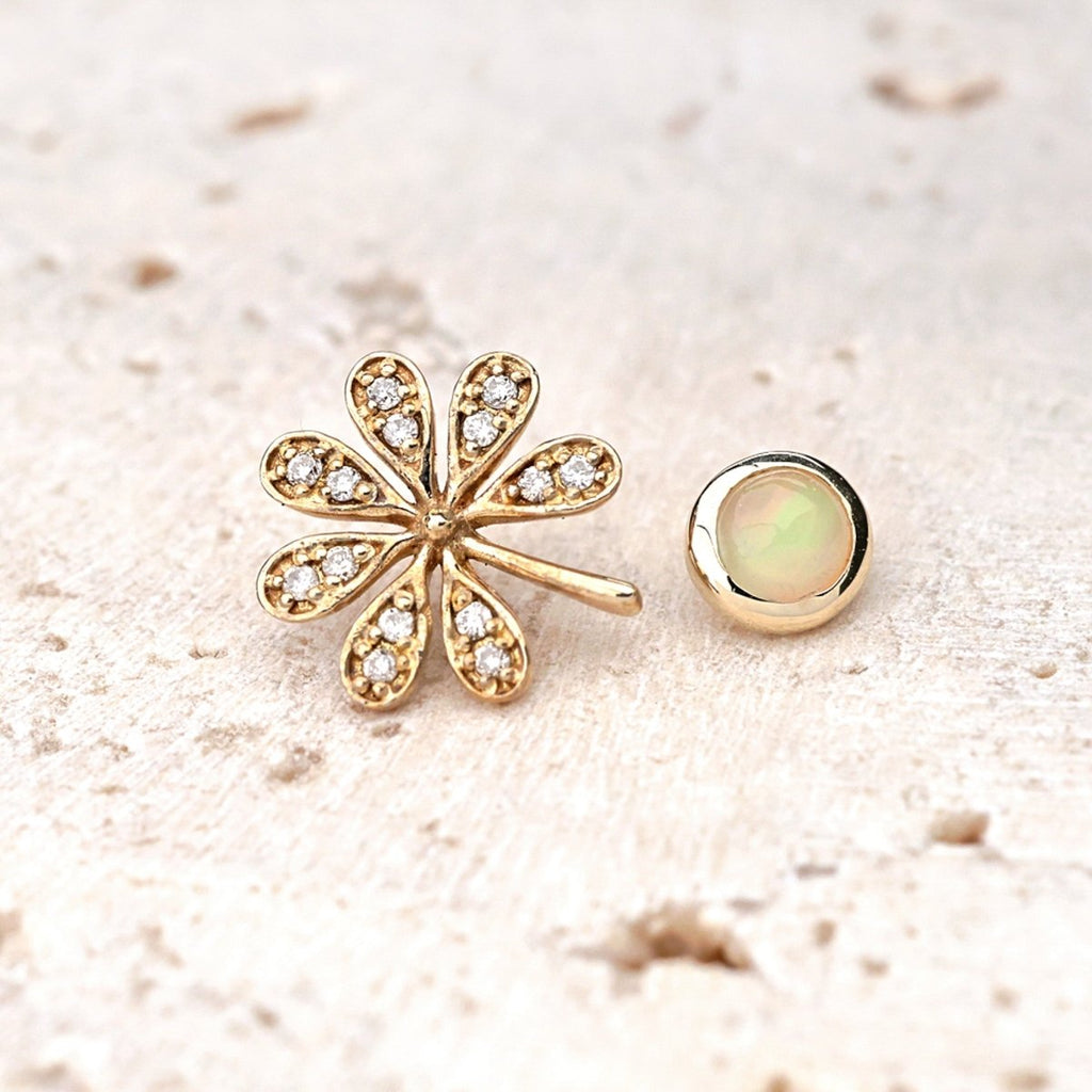 オパールの特徴は、光の当たり方によって表情を変える「遊色効果」。オパールの規則正しい粒子の配列と、石に含まれた水分によって起きる神秘的な現象です。 赤・オレンジ・黄・緑・青など、同じパターンが2つと存在しない個性に、特別な愛着が沸く宝石です。「創造性(イマジネーション)を高める宝石」といわれる所以は、その多彩な表情に刺激されるからかもしれません。