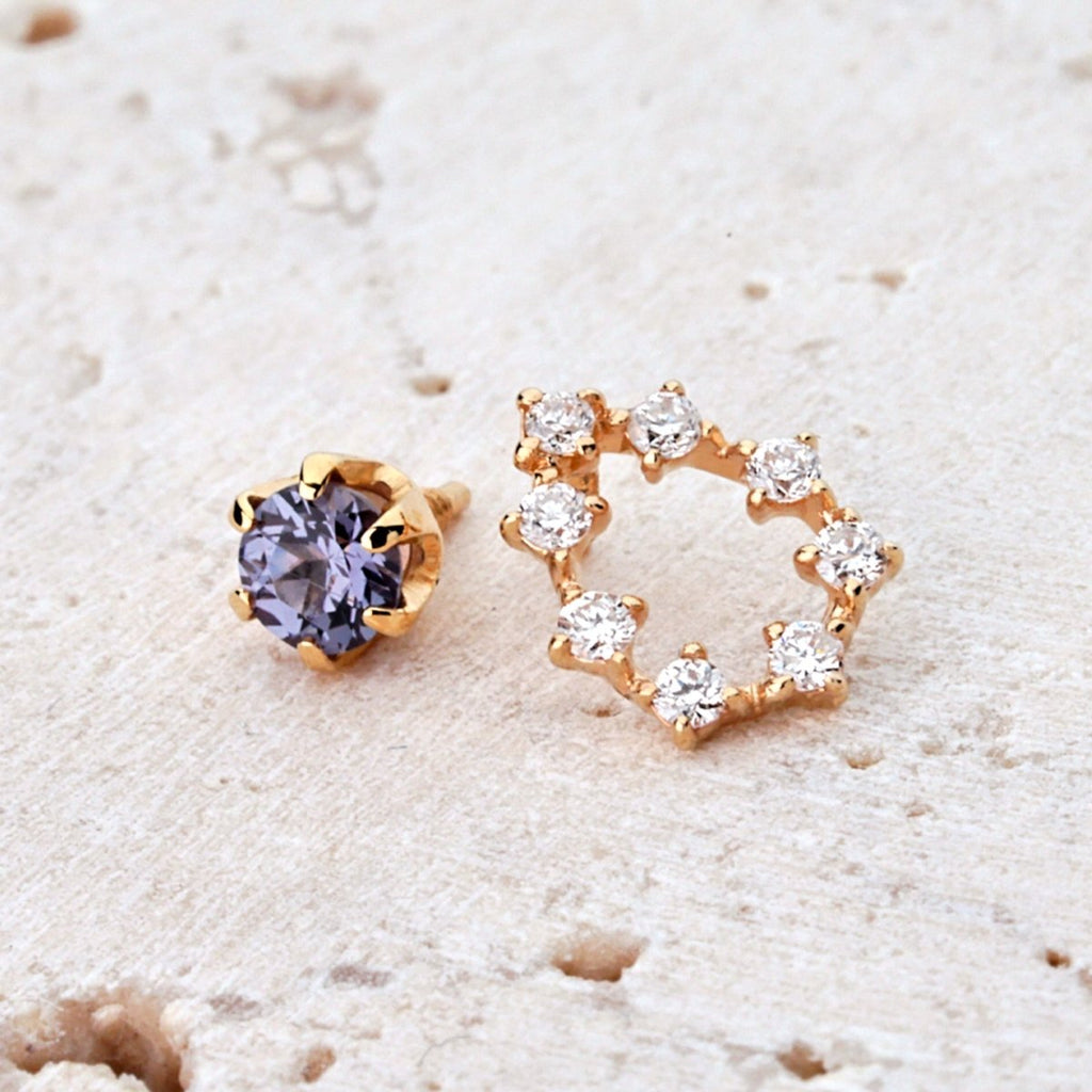 太陽光・蛍光灯の下では、ブルーがかった深いグリーン、ロウソクの明かりや白熱灯の下では赤紫色に色合いを変化させる、アレキサンドライトに似た「変色性」をお楽しみいただけます。