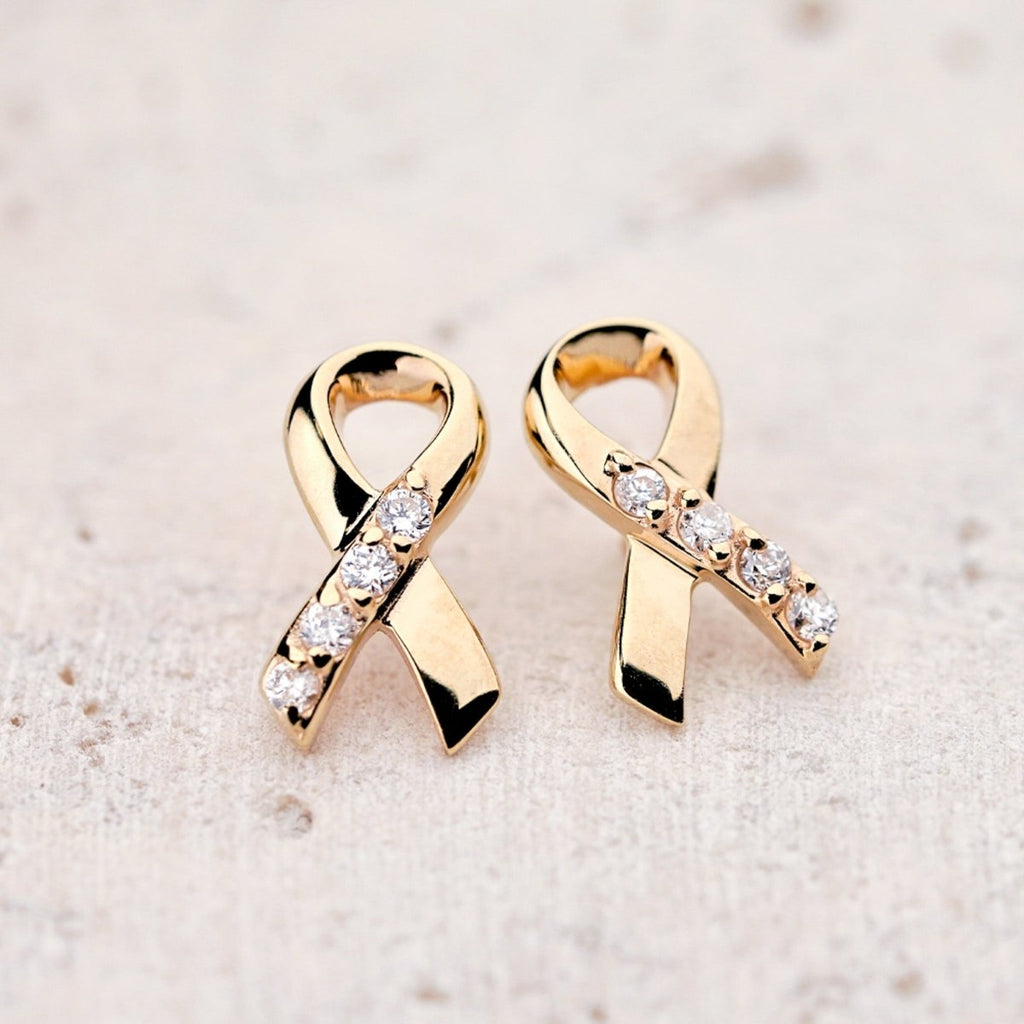 立体的なリボンモチーフ。ゴールドならではの上品な質感とダイヤモンドの美しい輝きをお楽しみください。