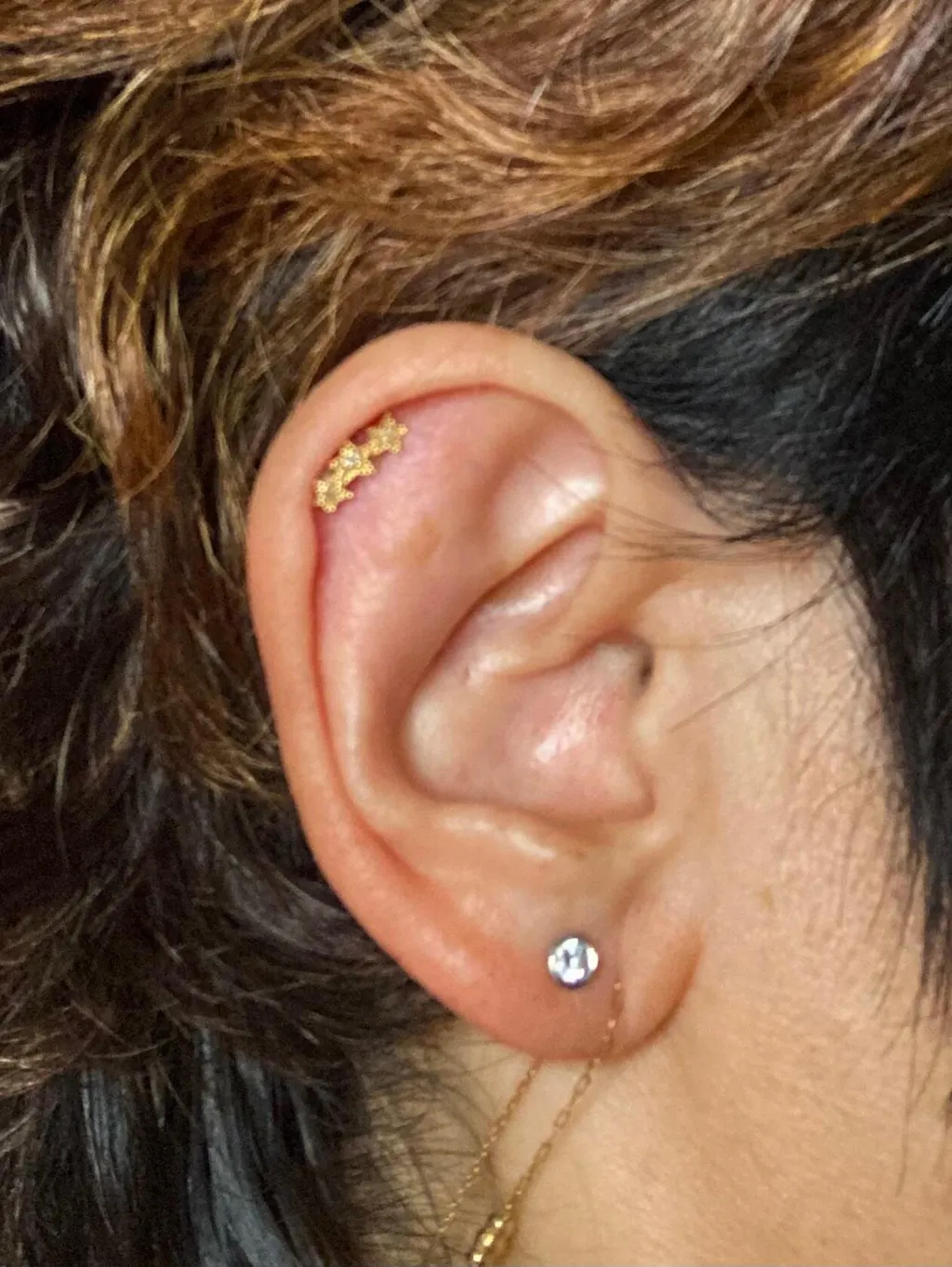 3つのスターモチーフを並べた、可愛らしいデザイン。耳のラインに合わせて、3連風のコーディネートをお楽しみください。