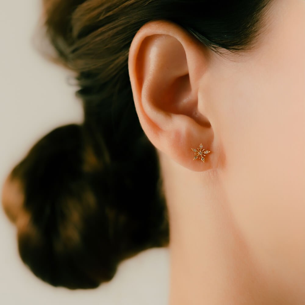 スターの間に、YGの繊細なデザインが施されお花のようにも見える、クールなデザインでありながら綺麗さを表現したピアスパーツ。中央に向けてカーブしたデザインが、横からの立体感を感じられるのも魅力です。