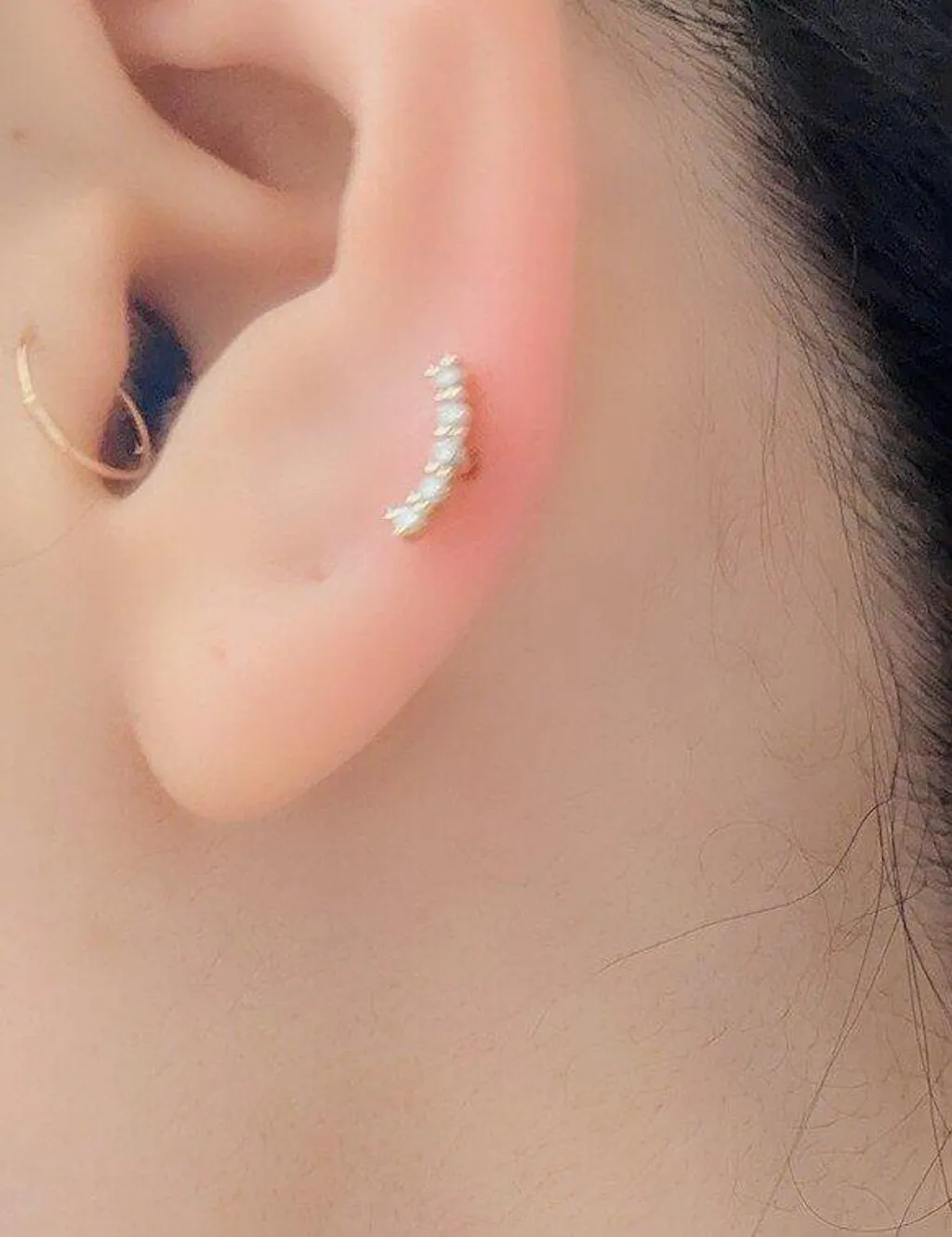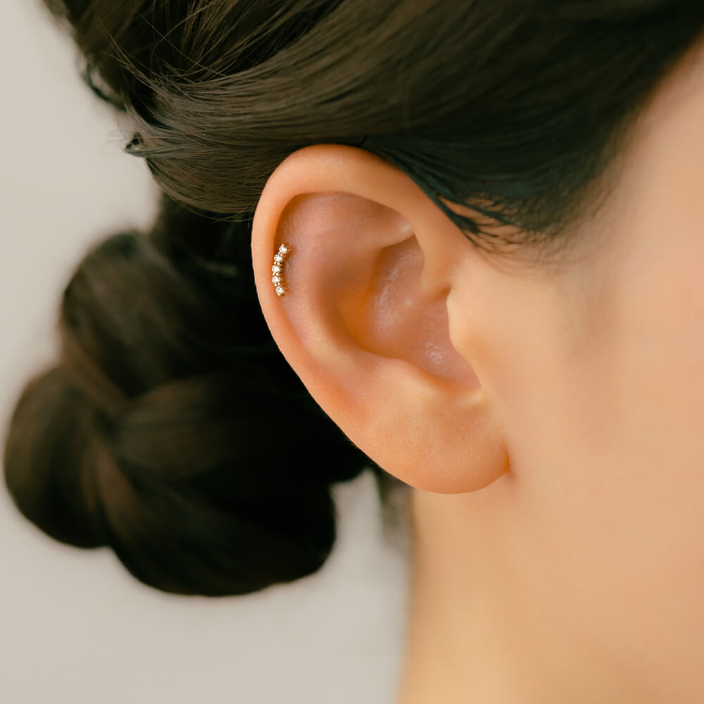 耳のラインに沿うダイヤモンドの輝き。適度なサイズ感が可愛らしく使いやすいパーツです。