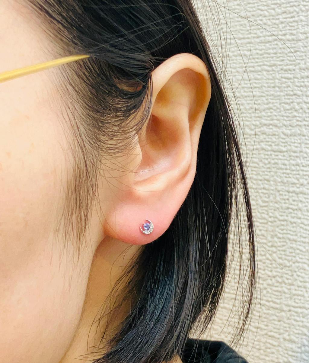 三日月の中心に輝くタンザナイト。淡いパープリッシュブルーの輝きに、タンザニアの夜を想う美しいデザインです。