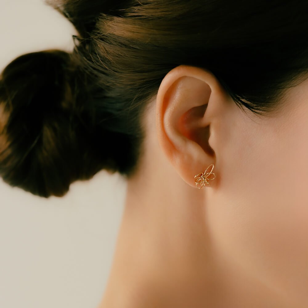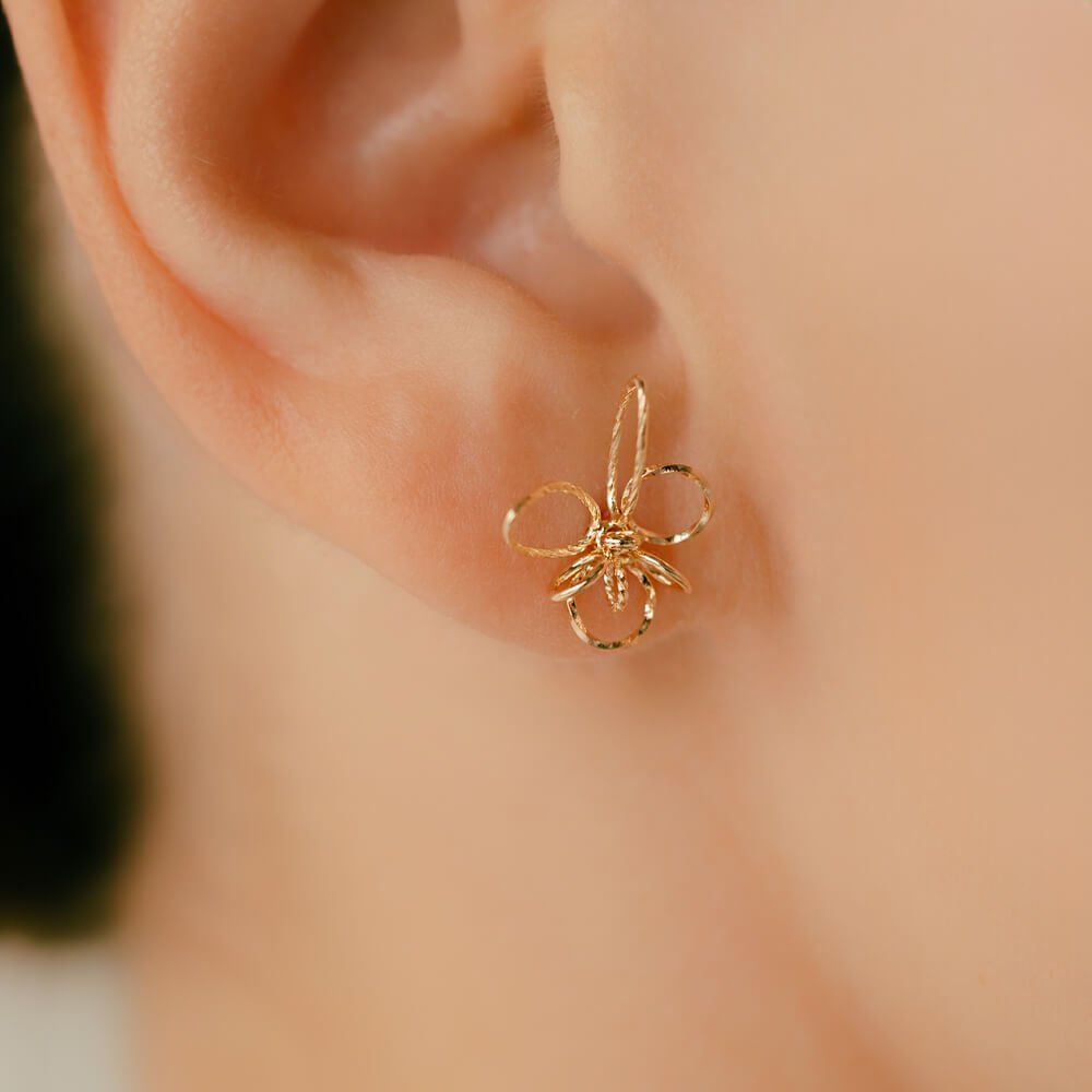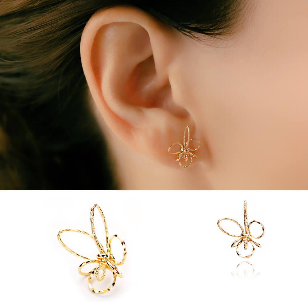 ピアスホールをリボンで留めたようなエレガントなデザイン。立体的で存在感のあるサイズ感でありながら、繊細で上品な印象のパーツです。