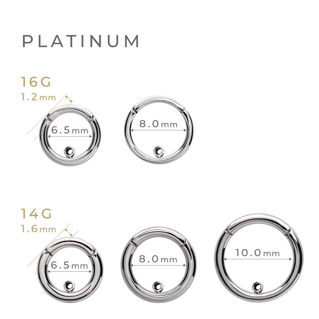 側面に向けてパーツをセットできるセグメントリングバーベル。滑らかな着け心地のフープピアスでパーツの着せ替えをお楽しみください。ネジ穴は両面に対応しているため、左右の向きを気にせずご使用いただけます。