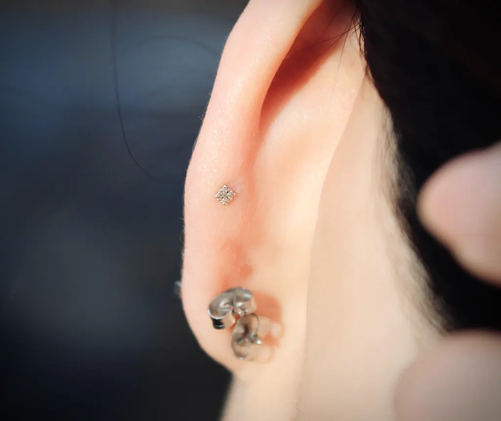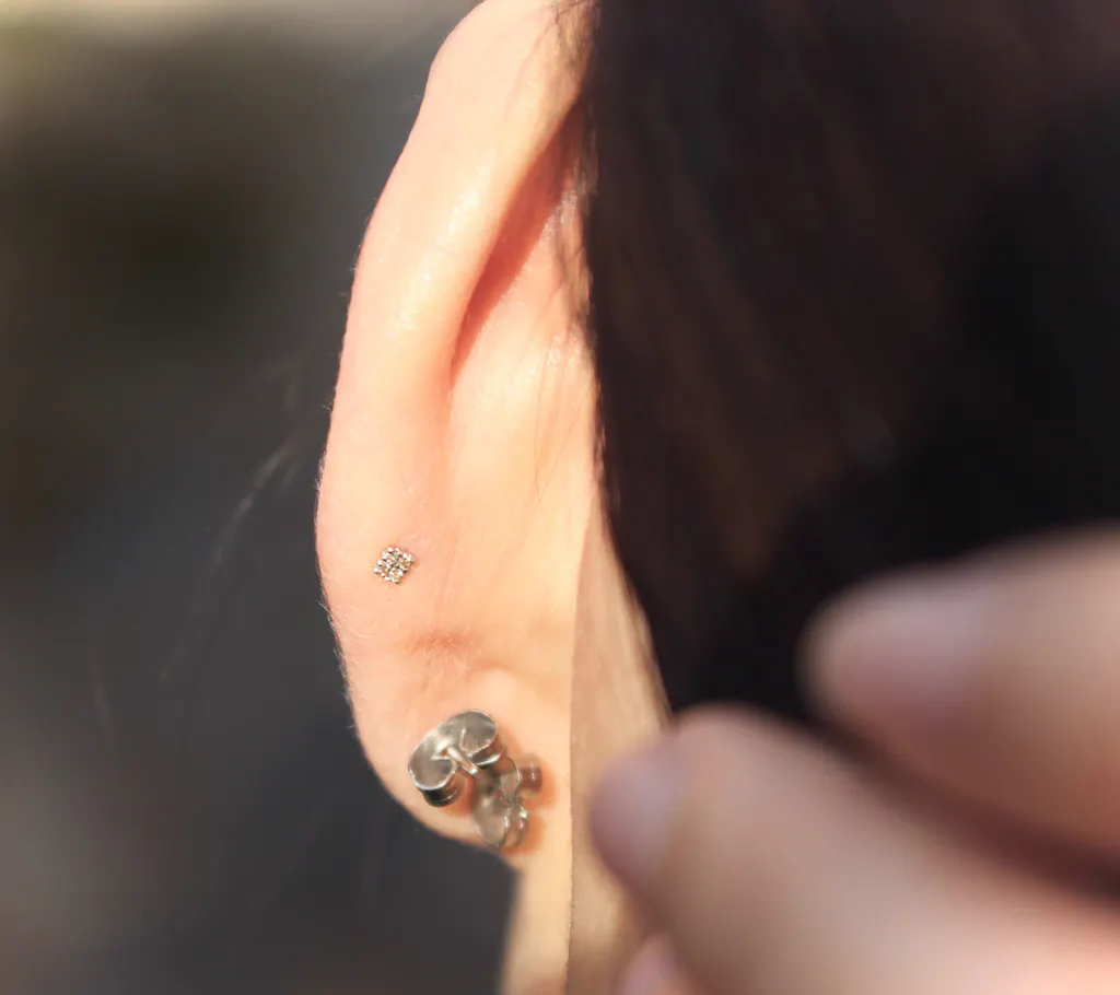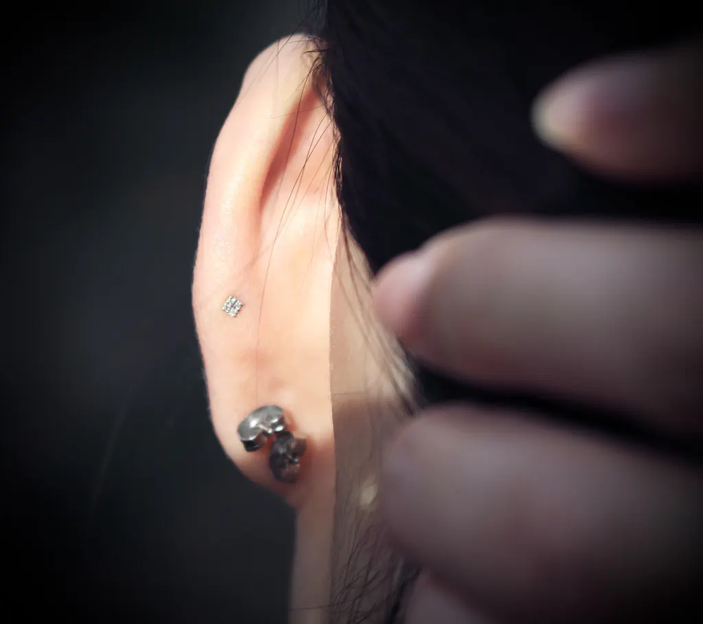 前後のコーディネートが楽しめるストレートバーベル。さりげなく耳裏のおしゃれをお楽しみください。